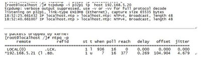 客戶端確實接受到廣播包,在客戶端執行ntpq –p,發現客戶端不鎖定廣播地址,而是將A地址選擇的參考源。